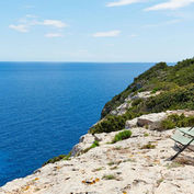 As you step outside, the expansive landscape unfolds, extending towards the coast and offering an enchanting walk through lush forests. The property boasts sweeping 180-degree sea views, stretching to Ibiza in the distance, making every moment outdoors a serene experience. The meticulously designed outdoor space includes a minimalist pool area with sun loungers, perfect for relaxing under the Mediterranean sun. The swimming pool, framed by gravel and stone features, evokes a sense of tranquility, while native lavender plants line the pathways, filling the air with their soothing fragrance.