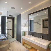 Additional interior highlights include a private educational or creative studio with a bespoke ceiling lighting design and a stunning digital seascape panel, as well as an exquisite shoe room lined with custom cabinetry and illuminated by a ceiling installation mimicking a galaxy—a true showcase of innovation and flair.