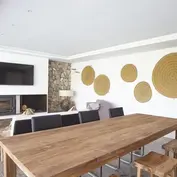 The villa features four spacious bedrooms, two of which boast en-suite bathrooms, ensuring privacy and comfort. The interiors are meticulously designed, combining high-quality materials with a cozy, inviting atmosphere. The main living room is a highlight of the house, featuring a beautifully crafted fireplace, perfect for enjoying cozy evenings with family and friends. Large floor-to-ceiling windows allow natural light to flood the interiors, creating a warm and bright ambiance throughout the day.