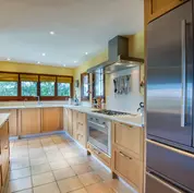This floor also accommodates two bedrooms, one of which is currently styled as a home office, a convenient guest toilet, and an elegant bedroom with an en-suite bathroom and dressing room. The combination of tasteful decor and large windows allows natural light to flood the interiors, creating a warm and welcoming atmosphere.