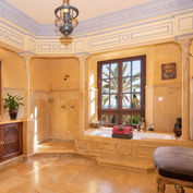Equally impressive are the bathrooms, where classic Andalusian design meets contemporary luxury. Marble finishes, artisan tiles, and bespoke wooden cabinetry create a spa-like atmosphere. A sunken bathtub framed by marble steps offers a private retreat, while large windows provide views of the surrounding gardens, allowing for moments of relaxation amidst nature. Intricate, Moorish-inspired detailing adds an exotic touch, enhancing the bathrooms’ distinctive character.