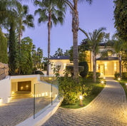 Step into the epitome of luxury with this frontline golf villa in the heart of Nueva Andalucia. Positioned on a generous corner plot, the property offers stunning views of the golf course and La Concha mountain.