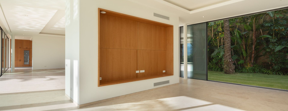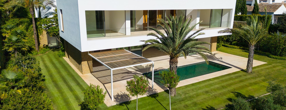Immerse yourself in the epitome of Mediterranean luxury with this exquisite villa poised on the serene grounds of the Finca Cortesin golf course. Designed by the esteemed Miguel Olazabal, this residence offers modern elegance and luxury over two levels. The upper floor houses four bedrooms, while a fifth bedroom graces the ground floor, each offering tranquil views and sumptuous living space. The interiors feature a harmonious blend of soft neutral tones and rich wooden accents, reflecting the villa's luxurious ethos.
